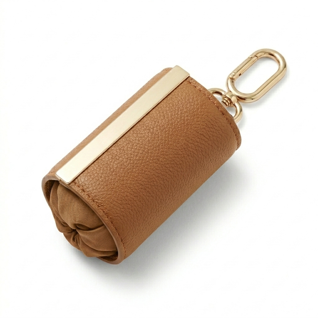 - Pebbled recycled vegan leather keychain