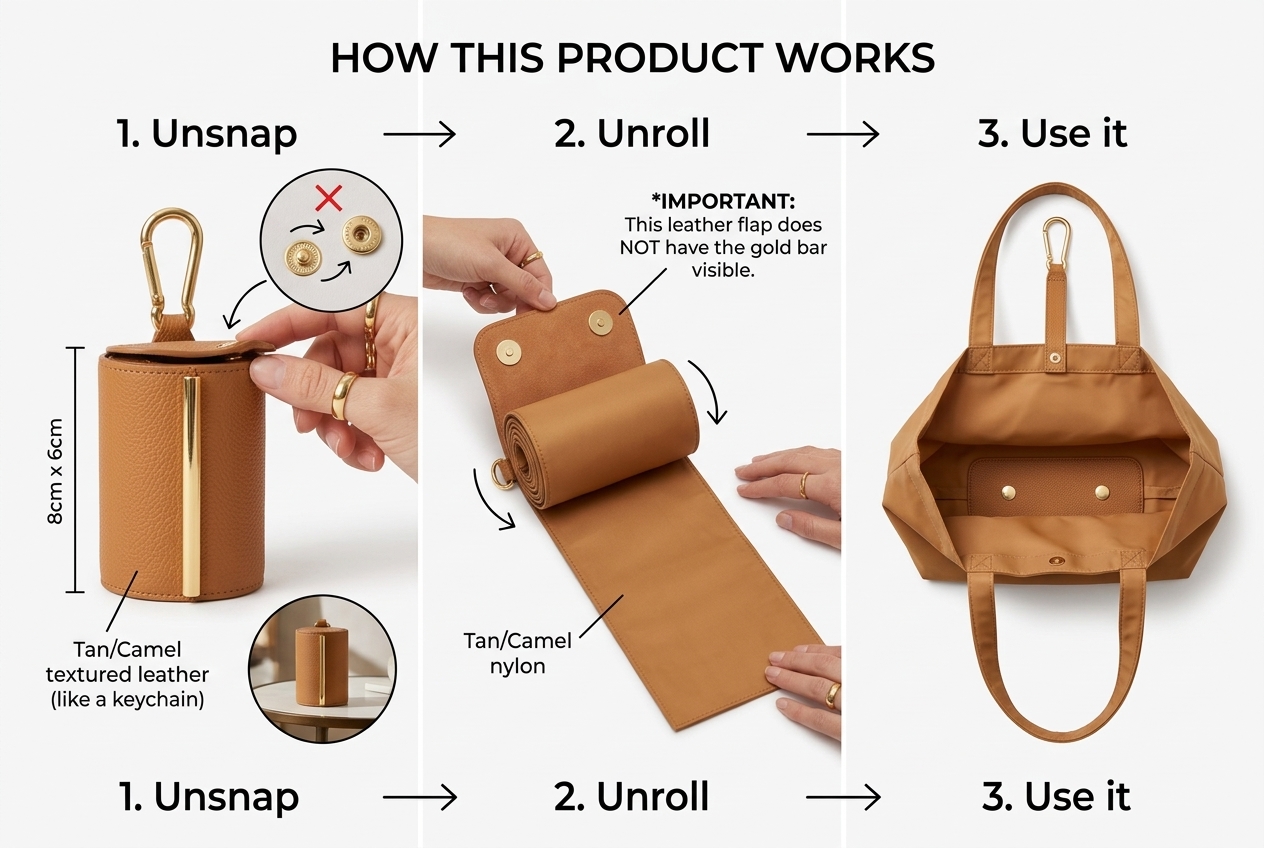 Clips to your keys. Fits in your palm. Opens into a full-size premium tote that carries 15kg. No more "I forgot my bag" moments — the TAWY goes where you go, every single day.